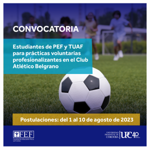 La presente es una convocatoria abierta a estudiantes de la Facultad de Educación Física de las carreras del Profesorado Universitario y de la Tecnicatura Universitaria en Actividad Física institución formadora de profesoras/es y/o técnicas/os de la ciudad de Córdoba, debiendo tener en cuenta que tendrán prioridad las/os estudiantes de la de cursos avanzados de ambas carreras.