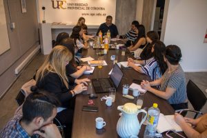 El rector normalizador de la Universidad Provincial de Córdoba, Mgter. Jorge Jaimez, junto al secretario de Politica Institucional, Bienestar Estudiantil y Graduados, Ab. Daniel Artaza y la secretaria de coordinación general, Mgter. María Laura Chauvet se reunieron con los y las representantes de los centros de estudiantes de las distintas facultades de esta casa de estudios.