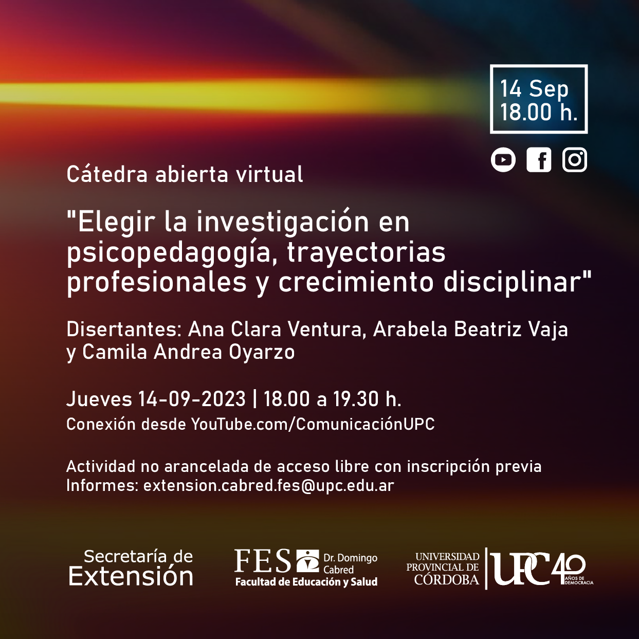 La interacción será a través del Canal de YouTube de la Universidad ingresando en este enlace.