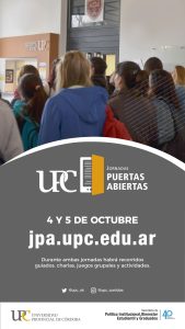 Las Jornadas de Puertas Abiertas (JPA) son un espacio para que tengas tu primer contacto con nuestra casa de estudios, conozcas un poco más sobre la vida universitaria a través de la voz de sus protagonistas. Vas a conocer las carreras que se brindan en cada una de nuestras cuatro Facultades, de qué se tratan, así como su perfil y salida profesional/laboral tienen, el tipo de actividades que involucran, entre muchos otros aspectos.