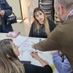 La/el docente Soledad Cáceres y José Manuel Martinengo y la responsable del Área de Infraestructura, Griselda Lorenzo, todas/os de la FTA, compartieron necesidades del aula taller y la realidad del sector de alojamiento y de agencias de viajes y turismo. Por su parte, el profesor German Soria -de la FAD- guió a los y las estudiantes de la Tecnicatura Universitaria en Diseño de Interiores para realizar propuestas concretas.