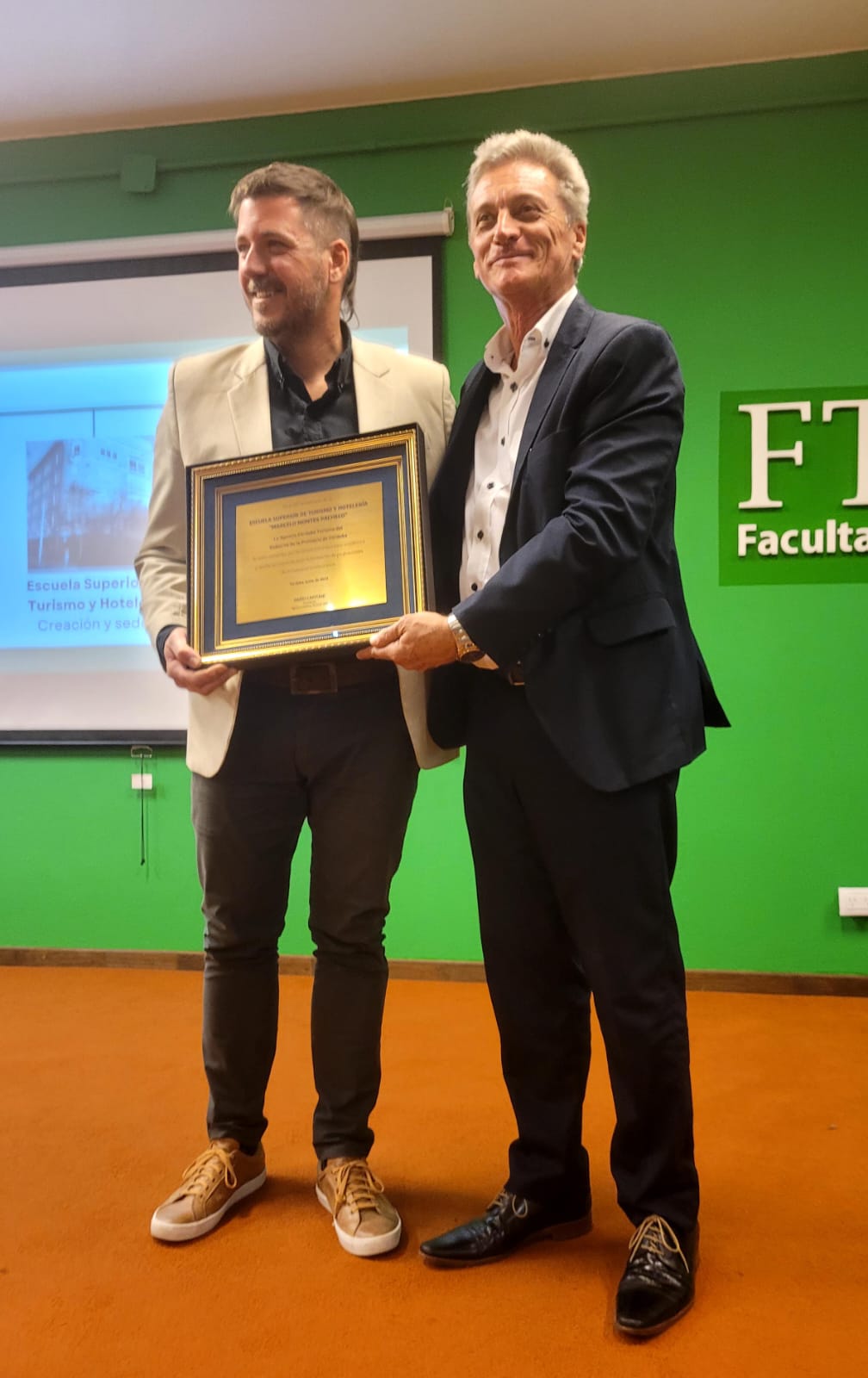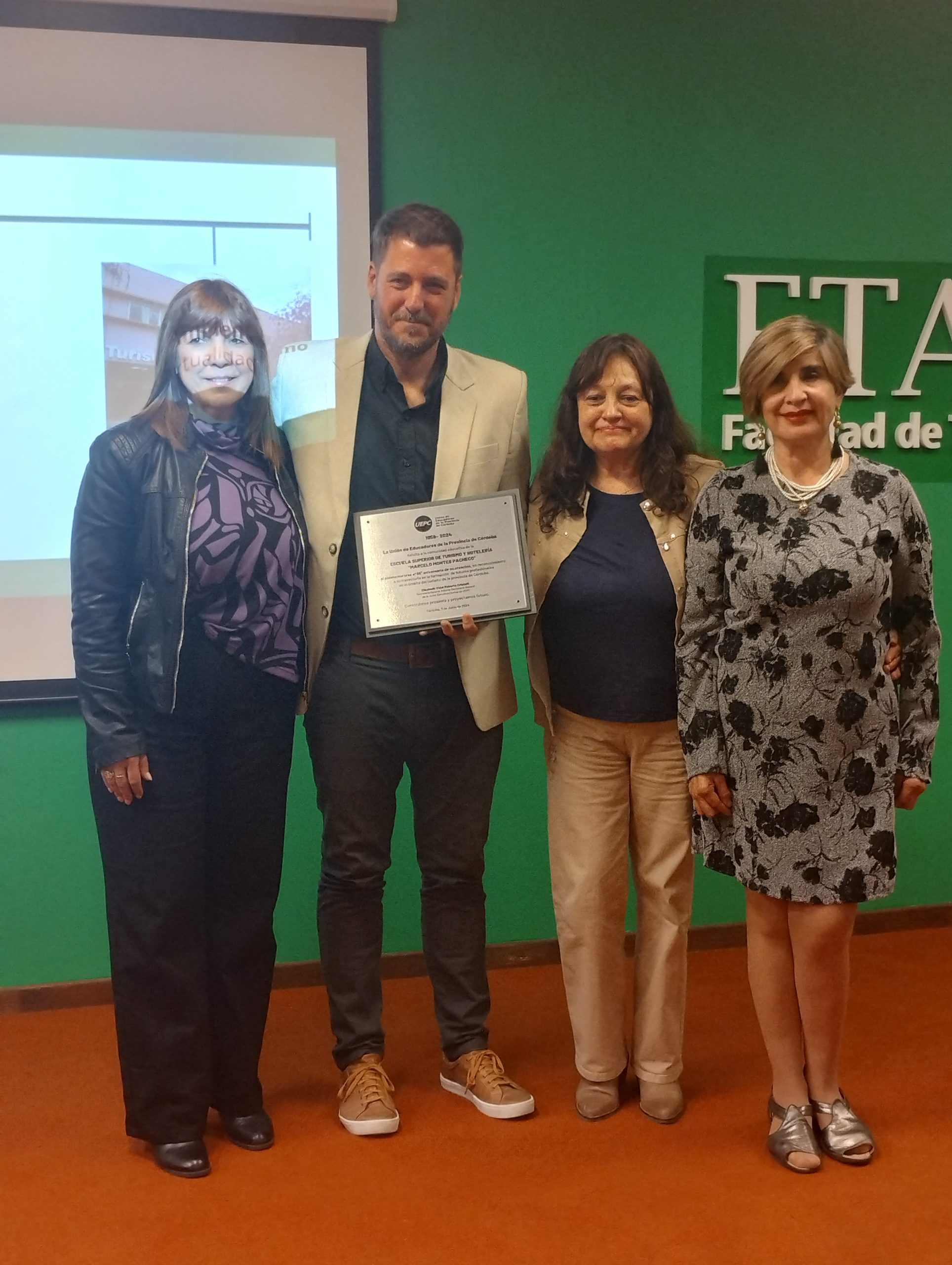 Más tarde, el Decano de la Facultad de Turismo y Ambiente “Marcelo Montes Pacheco”, Lic. Fernando Westergaard, recibió una donación de placas de parte de la Unión de Educadores de la Provincia de Córdoba (UEPC) y de la Agencia Córdoba Turismo.