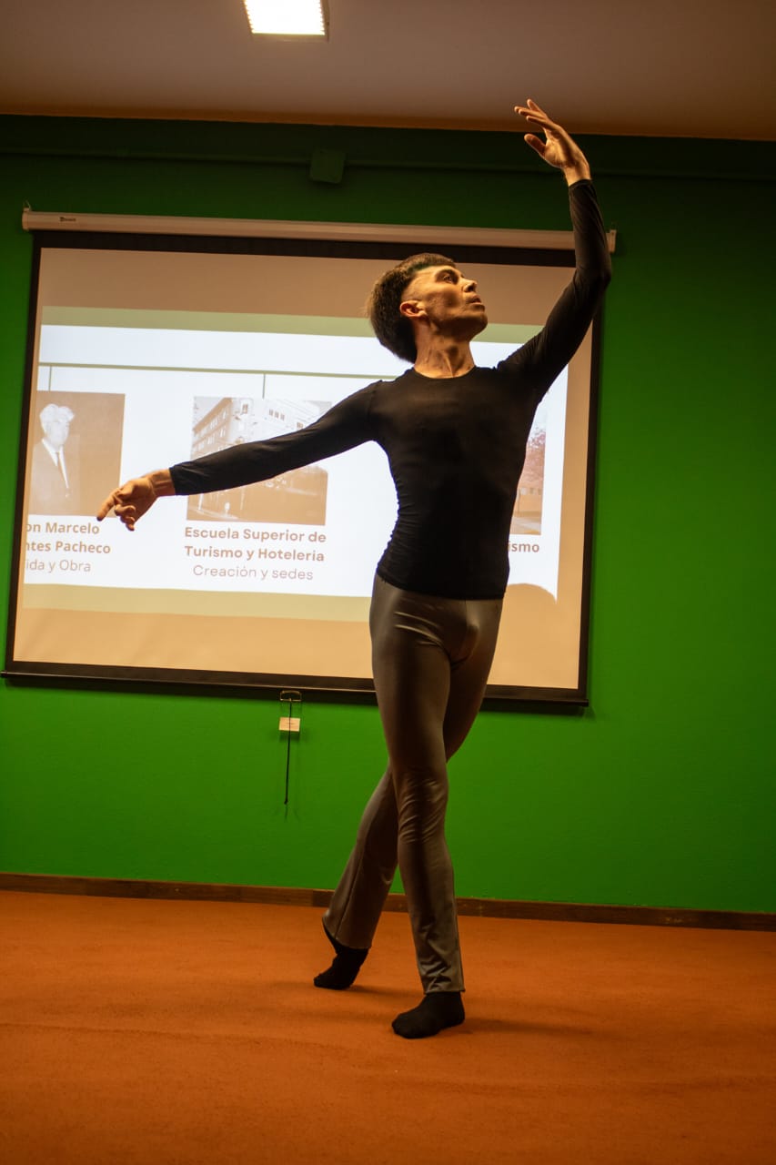 El evento siguió con un espacio artístico a cargo de Diego Félix Infante, egresado de la Tecnicatura Universitaria en Guía de Turismo, quien interpretó una pieza de baile clásico, parte del ballet Lago de Los Cisnes.