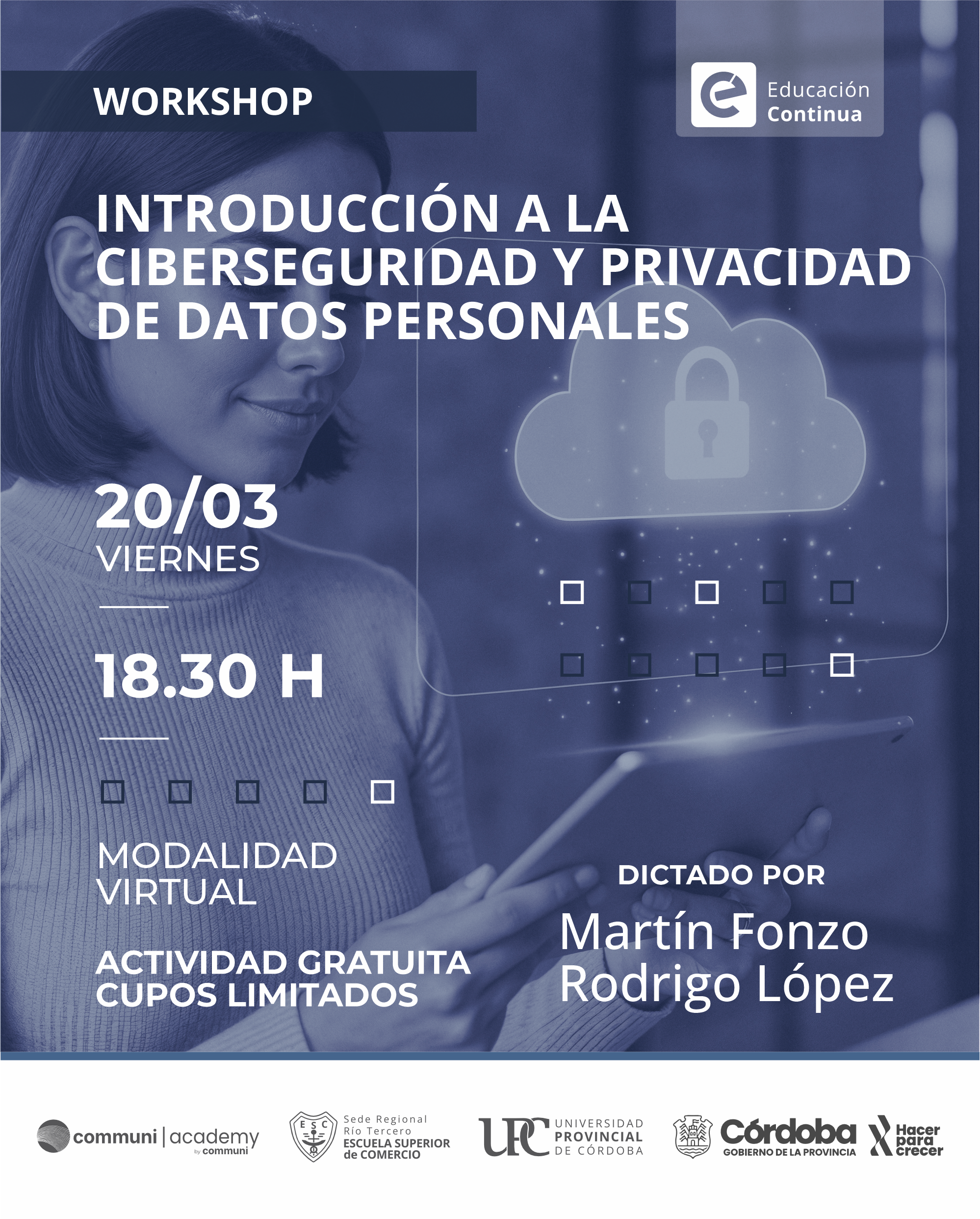 La Universidad Provincial de Córdoba (UPC), a través de su Sede Regional Río Tercero, invita a participar del Workshop gratuito: «Introducción a la Ciberseguridad y privacidad de datos personales».