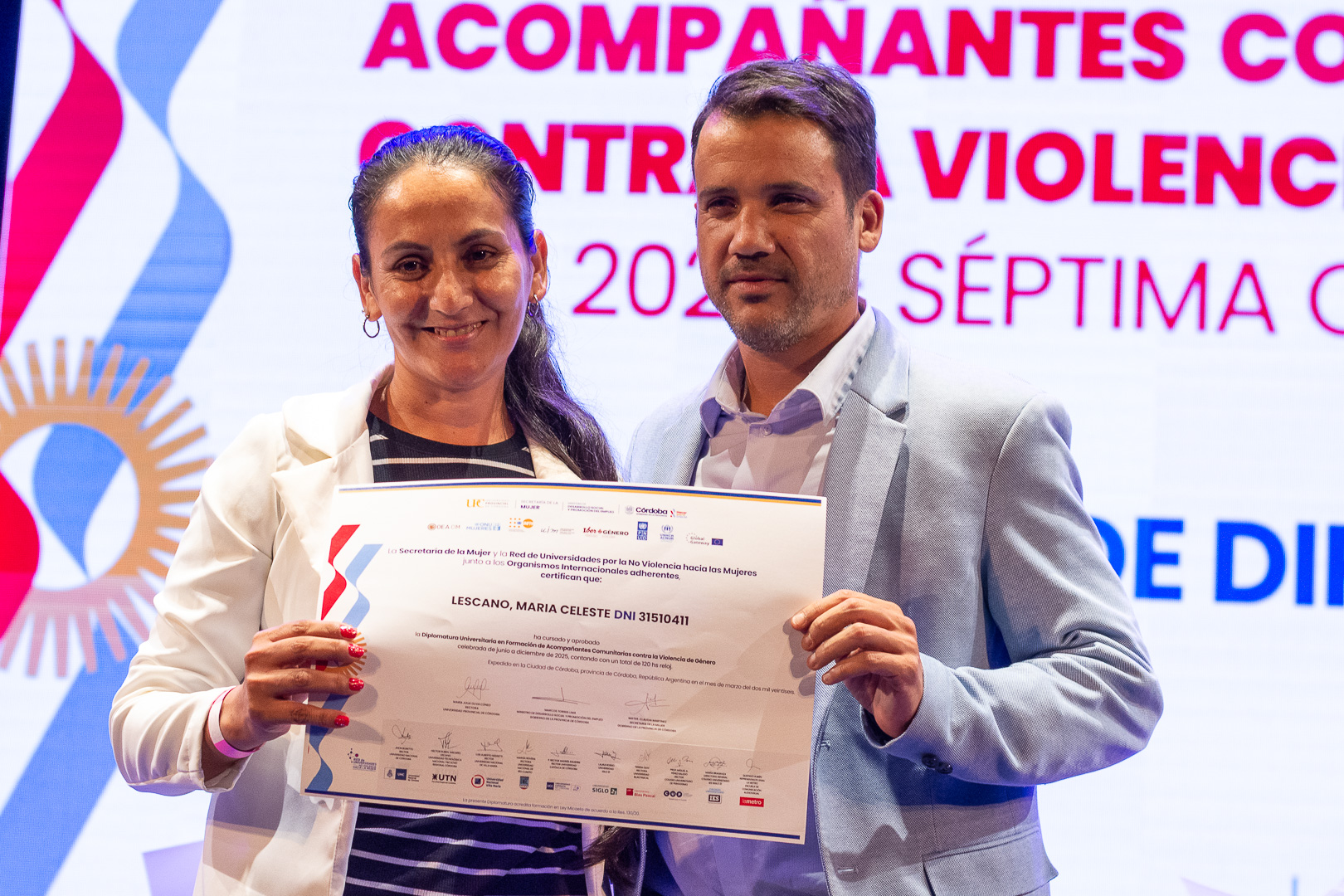 La Universidad Provincial de Córdoba (UPC) fue el escenario de la entrega de certificados de la 7ª Cohorte de la Diplomatura Universitaria en Acompañantes Comunitarias contra la Violencia de Género. La jornada, que tuvo lugar en la Sala Mayor de Ciudad de las Artes, marcó el cierre de una propuesta formativa que alcanzó una cifra récord de más de 28.000 personas inscriptas de Córdoba, otras provincias argentinas y diversos países de América Latina.