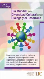 En el Día Mundial de la Diversidad Cultural para el Diálogo y el Desarrollo la Secretaría de Extensión y Relaciones Institucionales, por intermedio del Área de Internacionalización e Interculturalidad, invita a toda su comunidad educativa a celebrar este día compartiendo en una bitácora participativa producciones, experiencias, anécdotas y/o saberes que den cuenta de la diversidad cultural que nos define de manera identitaria o bien a la que nos hemos acercado con interés o por casualidad.