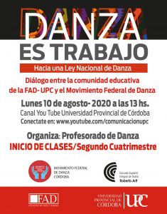 El evento que se sostendrá entre las carreras de Danza de la FAD, y los integrantes del equipo de trabajo del Movimiento Federal de Danza (MFD) Córdoba, estará abierto a la comunidad educativa de la FAD- UPC y a todo público.
