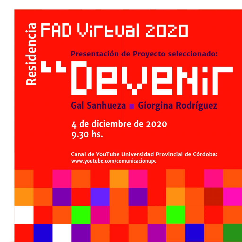 Durante 2020 y en pleno período de ASPO el Centro de Estudios Experimentales de la FAD- UPC decidió, con el apoyo de la Subsecretaría de Cultura de la Municipalidad de Córdoba, convocar a la primera Residencia FAD Virtual 2020, para estudiantes y egresados de las carreras de la Facultad de Arte y Diseño- UPC.