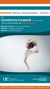 La Secretaría de Asuntos Estudiantiles y Graduados de la Universidad Provincial de Córdoba te invita a participar del taller gratuito de “CONCIENCIA CORPORAL para el interprete – Voz y Emociones en movimiento”.