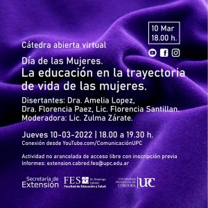 El 8 de marzo nos convoca a reflexionar en torno a la trayectoria de vida de las mujeres en su entrecruzamiento con la educación, la política y la salud. Como institución educativa somos conscientes de la importancia, el compromiso y el desafío que esta realidad sociohistórica requiere. Por tal motivo, desde la Secretaría de Extensión de la FES, invitamos a participar de la primera Cátedra Abierta de 2022 en la que contaremos con la presencia de la Doctora Amelia Lopez, la Doctora Florencia Paez y la Licenciada Florencia Santillan.