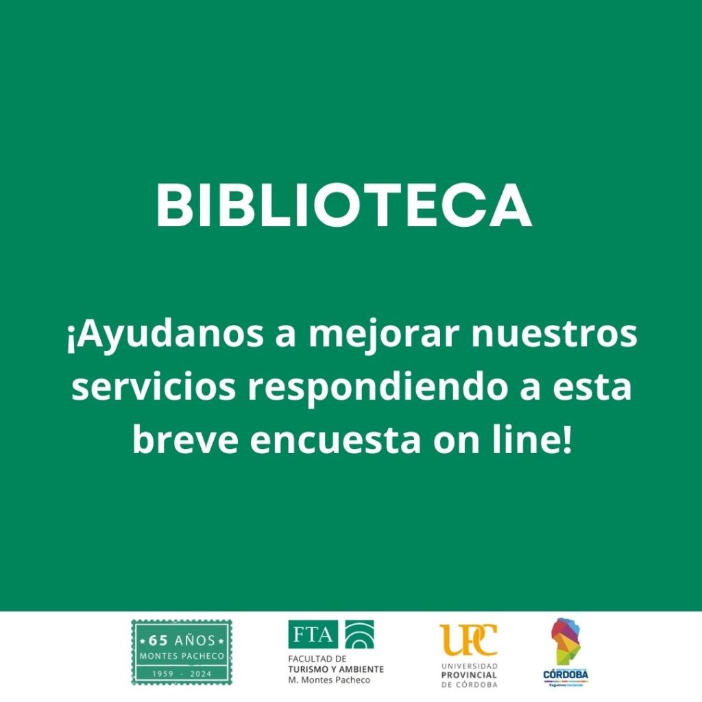 La Facultad de Turismo y Ambiente «Marcelo Montes Pacheco» trabaja en la mejora del funcionamiento de su Biblioteca, y para ello es muy importante conocer expectativas, necesidades y preferencias de los miembros de su comunidad educativa. Te invitamos a llenar la encuesta.