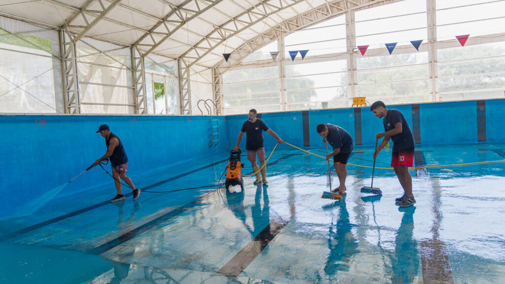Se realizan trabajos de mantenimiento y mejora de infraestructura en la pileta semiolímpica y los gimnasios en esta facultad del Campus Norte.